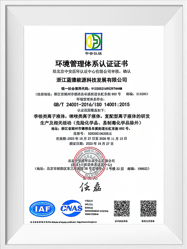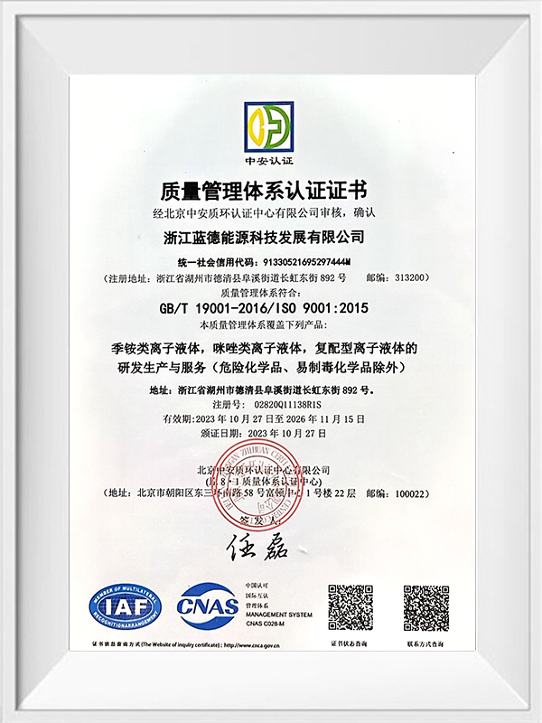 Chiết Giang LanDe Energy Technology Development Co., Ltd. (LETD) là một doanh nghiệp sản xuất chất lỏng ion được thành lập vào năm 2009, có trụ sở chính tại số 892 phố Changhong East, Khu phát triển kinh tế huyện Deqing, tỉnh Chiết Giang. Vốn đăng ký của công ty là 36,9 triệu nhân dân tệ và tổng tài sản là 220 triệu nhân dân tệ.
